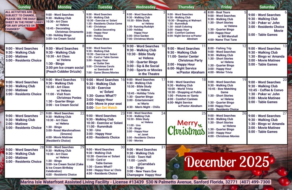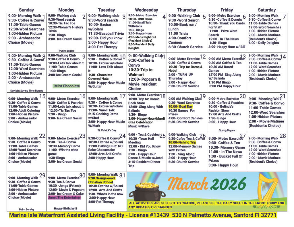 Find this month’s assisted living/retirement community events calendar below.