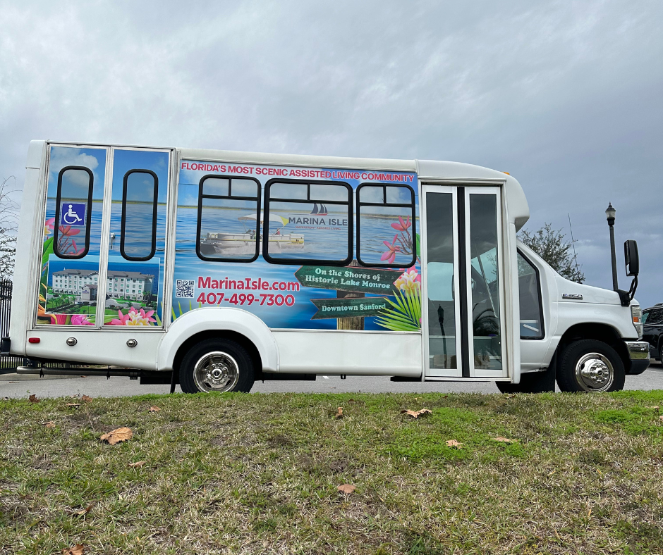 Explore the possibilities and freedom offered by Marina Isle Assisted Living’s transportation services with Gus the Bus – your ride to convenience, adventure, and connectivity.